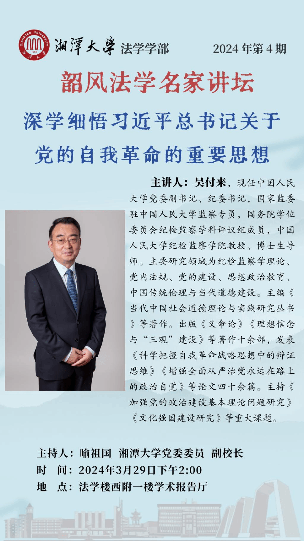 【韶风法学名家讲坛】吴付来:深学细悟习近平总书记关于党的自我革命的重要思想