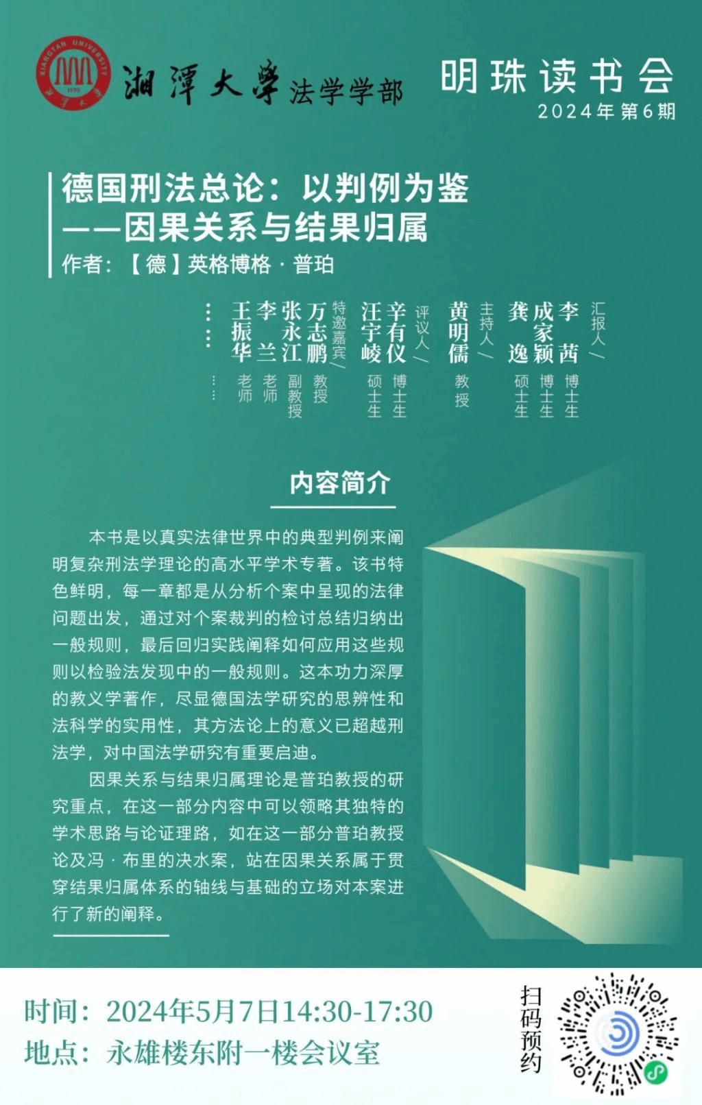 【明珠读书会】2024年第6期:德国刑法总论:以判例为鉴——因果关系与结果归属