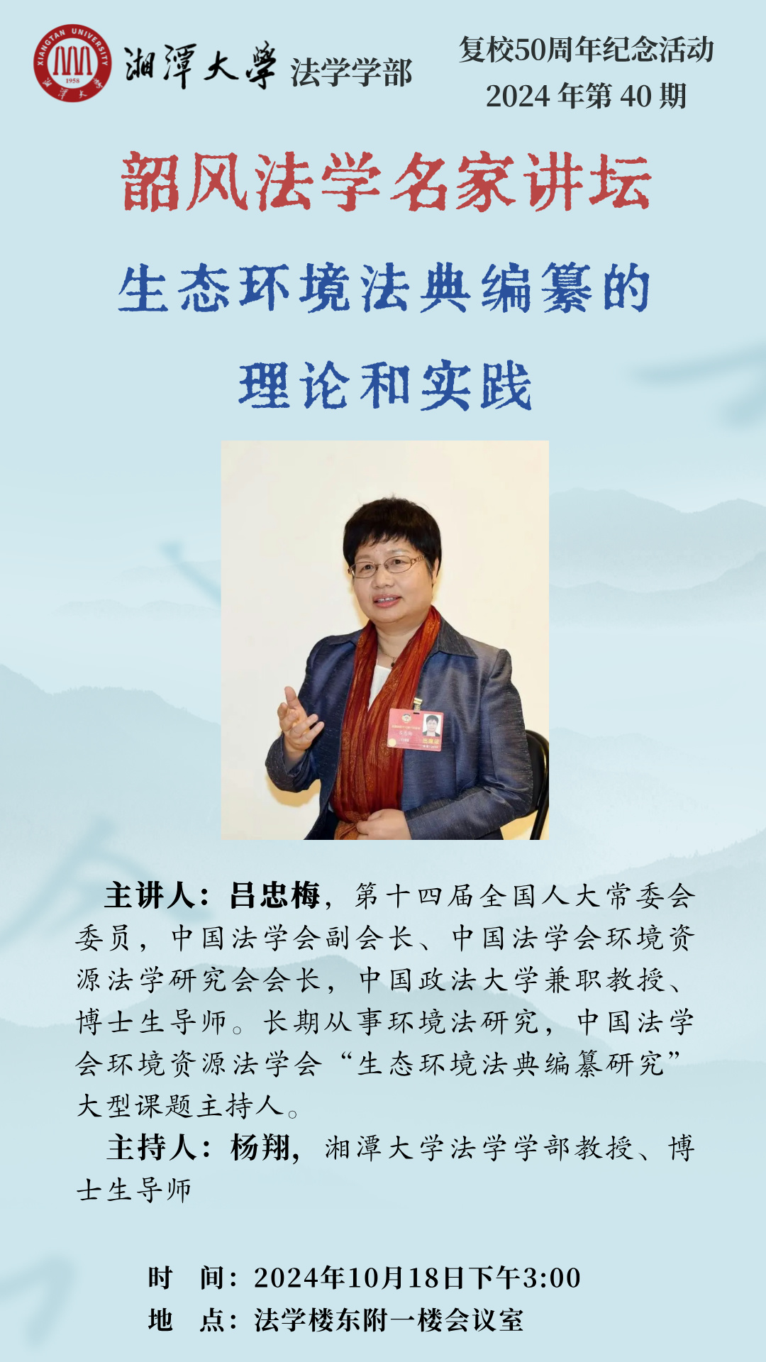 【韶风法学名家讲坛】吕忠梅:生态环境法典编纂的理论和实践