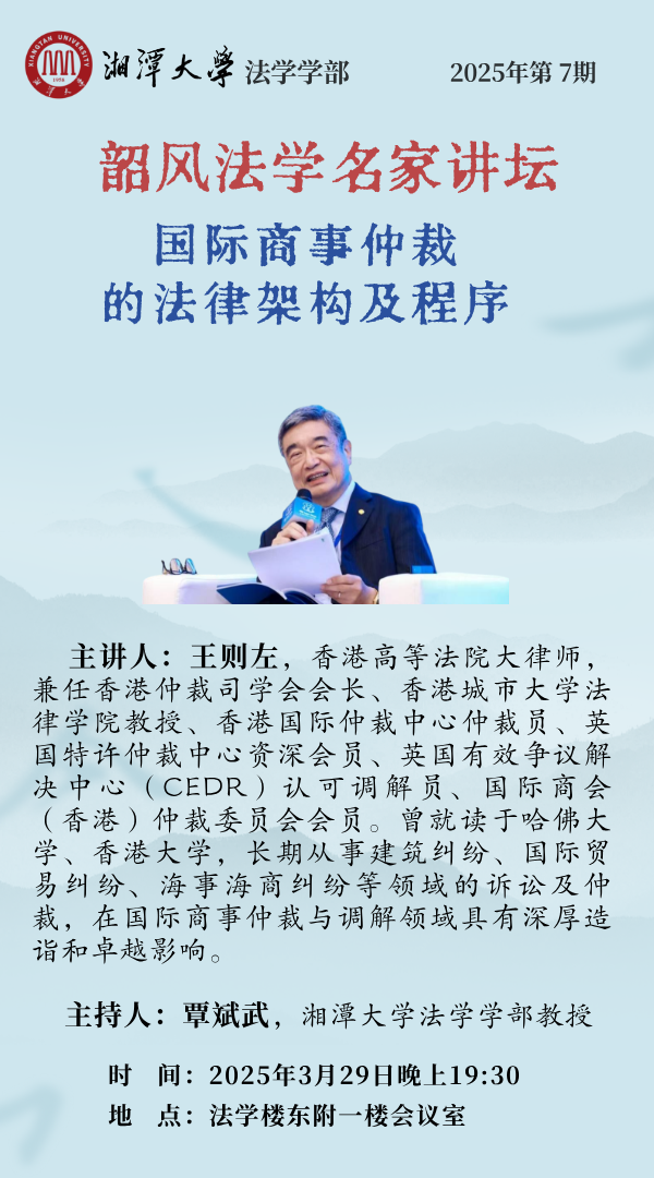 【韶风法学名家讲坛】王则左:国际商事仲裁的法律架构及程序