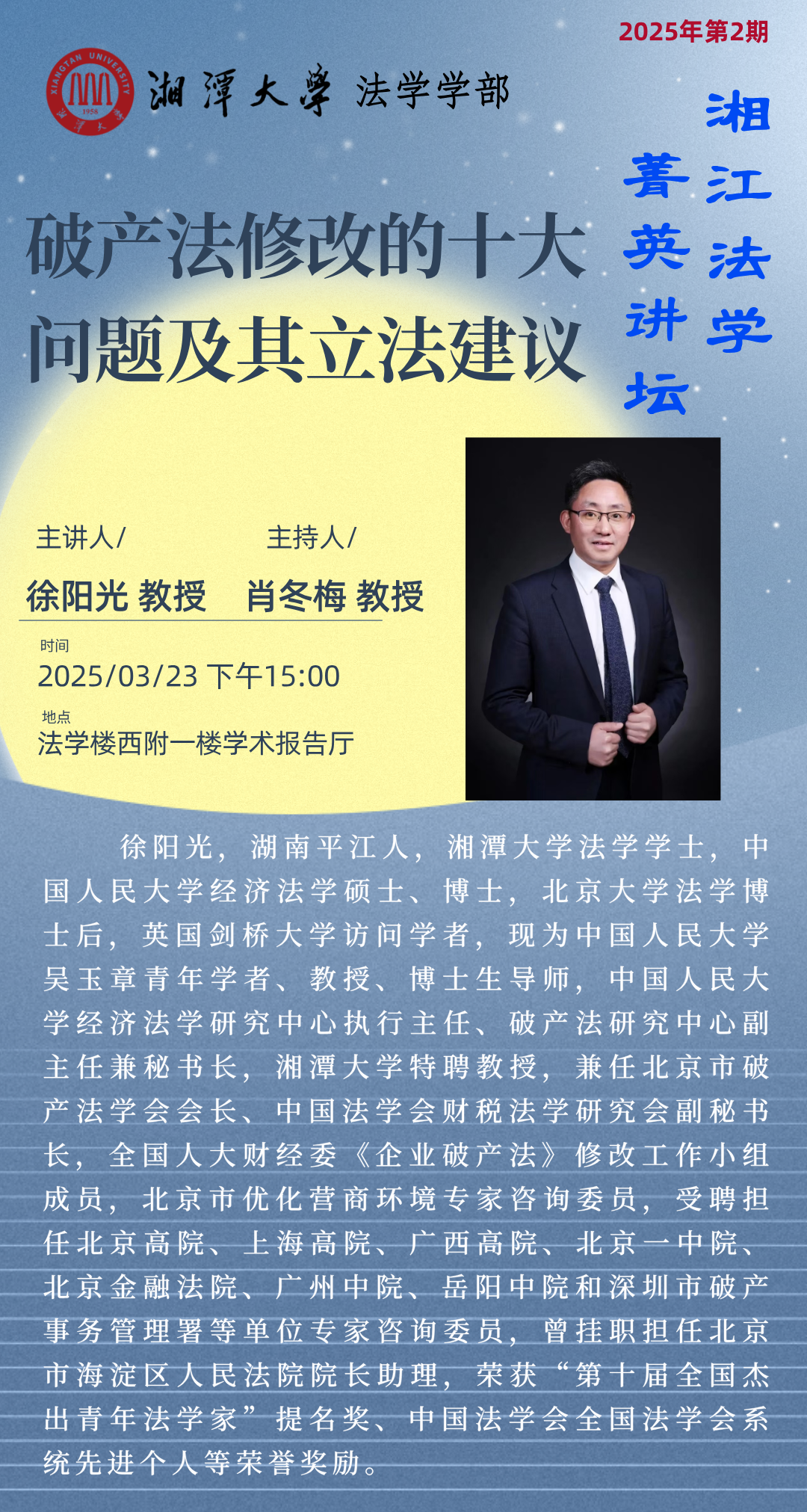 【湘江法学菁英讲坛】徐阳光:破产法修改的十大问题及其立法建议