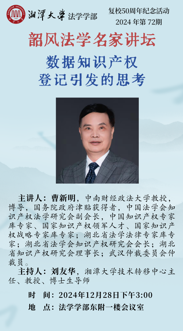 【韶风法学名家讲坛】曹新明:数据知识产权登记引发的思考