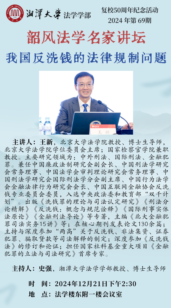 【韶风法学名家讲坛】王新:我国反洗钱的法律规制问题