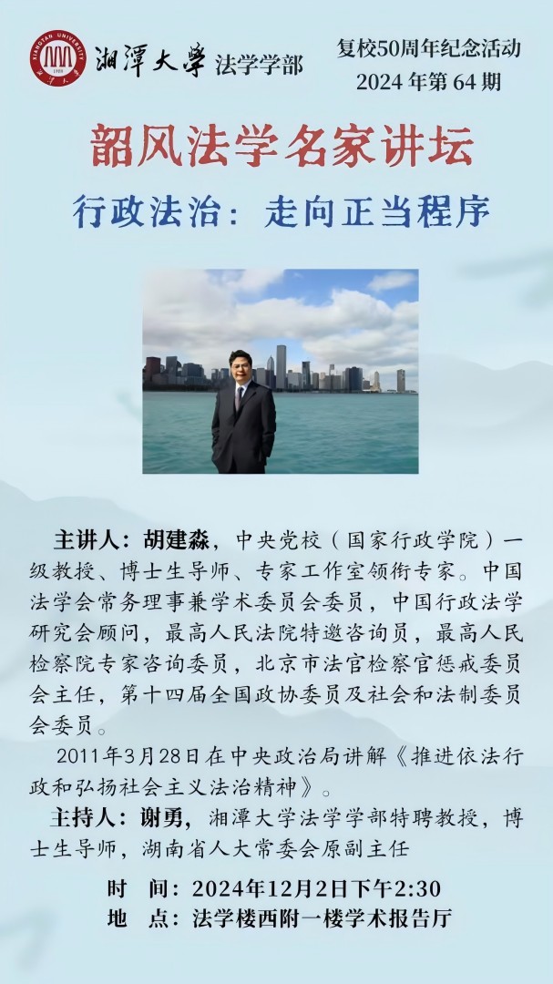 【韶风法学名家讲坛】胡建淼:行政法治:走向正当程序