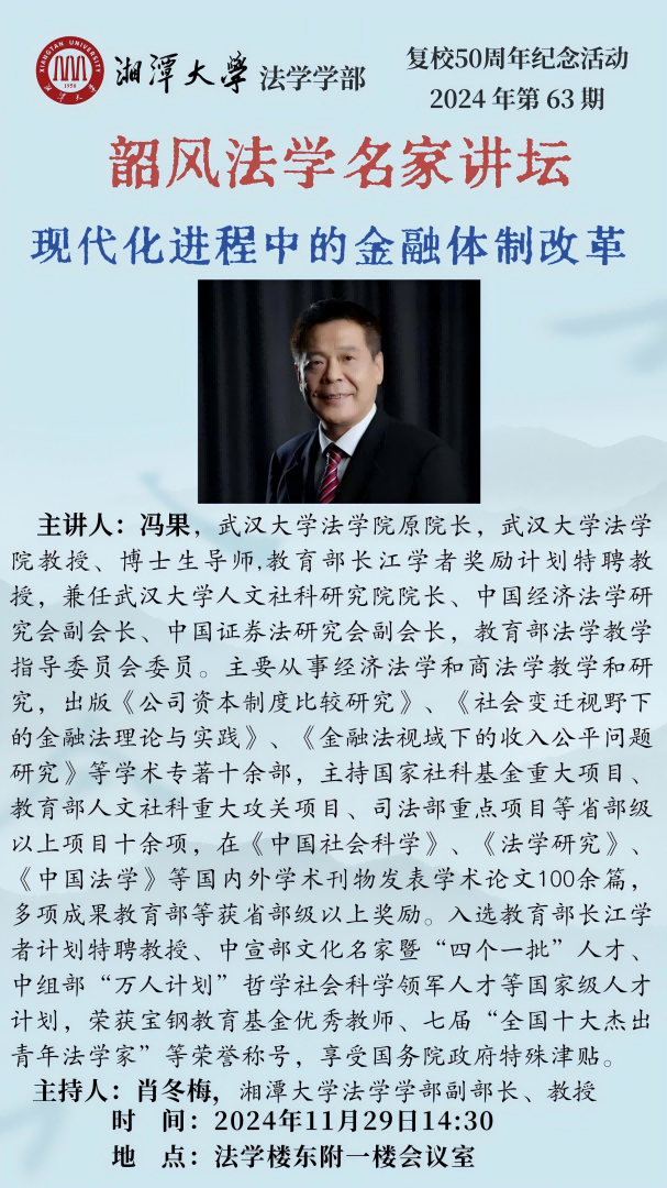 【韶风法学名家讲坛】冯果;现代化进程中的金融体制改革