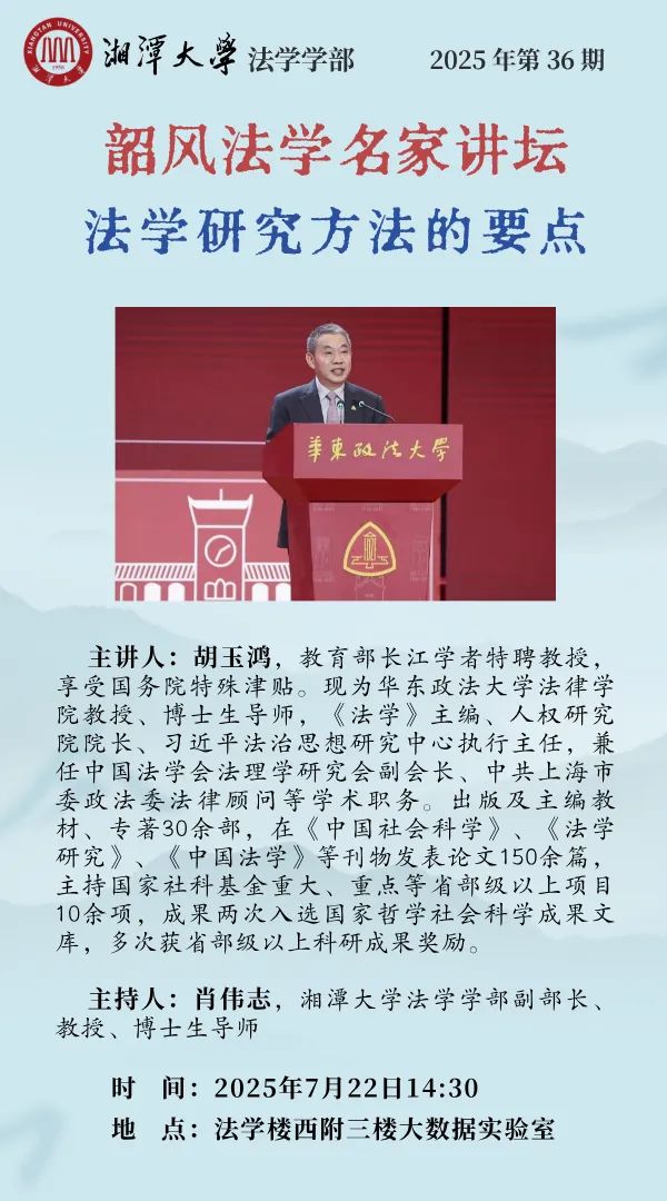 【韶风法学名家讲坛】2025年第36期 胡玉鸿:法学研究方法的要点