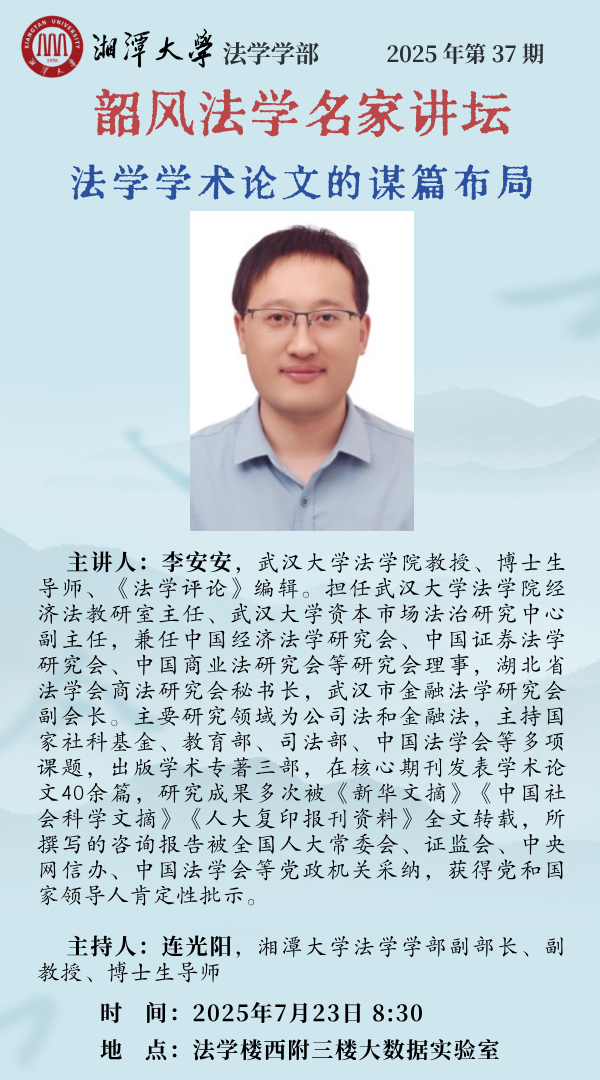 【韶风法学名家讲坛】2025年第37期 李安安:法学学术论文的谋篇布局