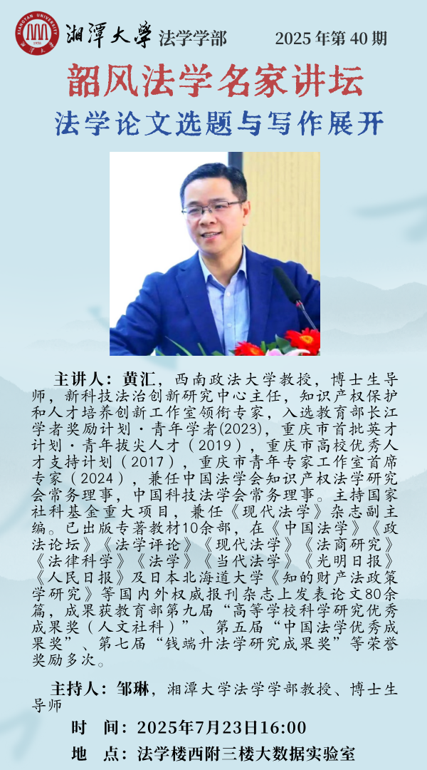 【韶风法学名家讲坛】2025年第40期 黄汇:法学论文选题与写作展开