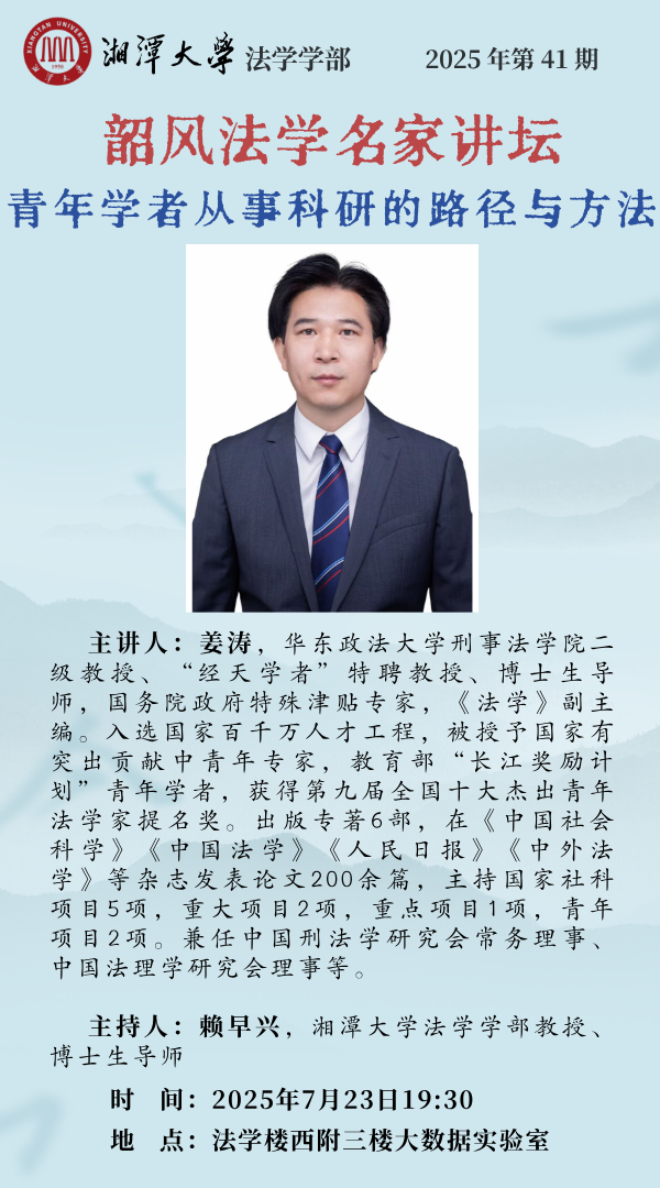 【韶风法学名家讲坛】2025年第41期 姜涛:青年学者从事科研的路径与方法