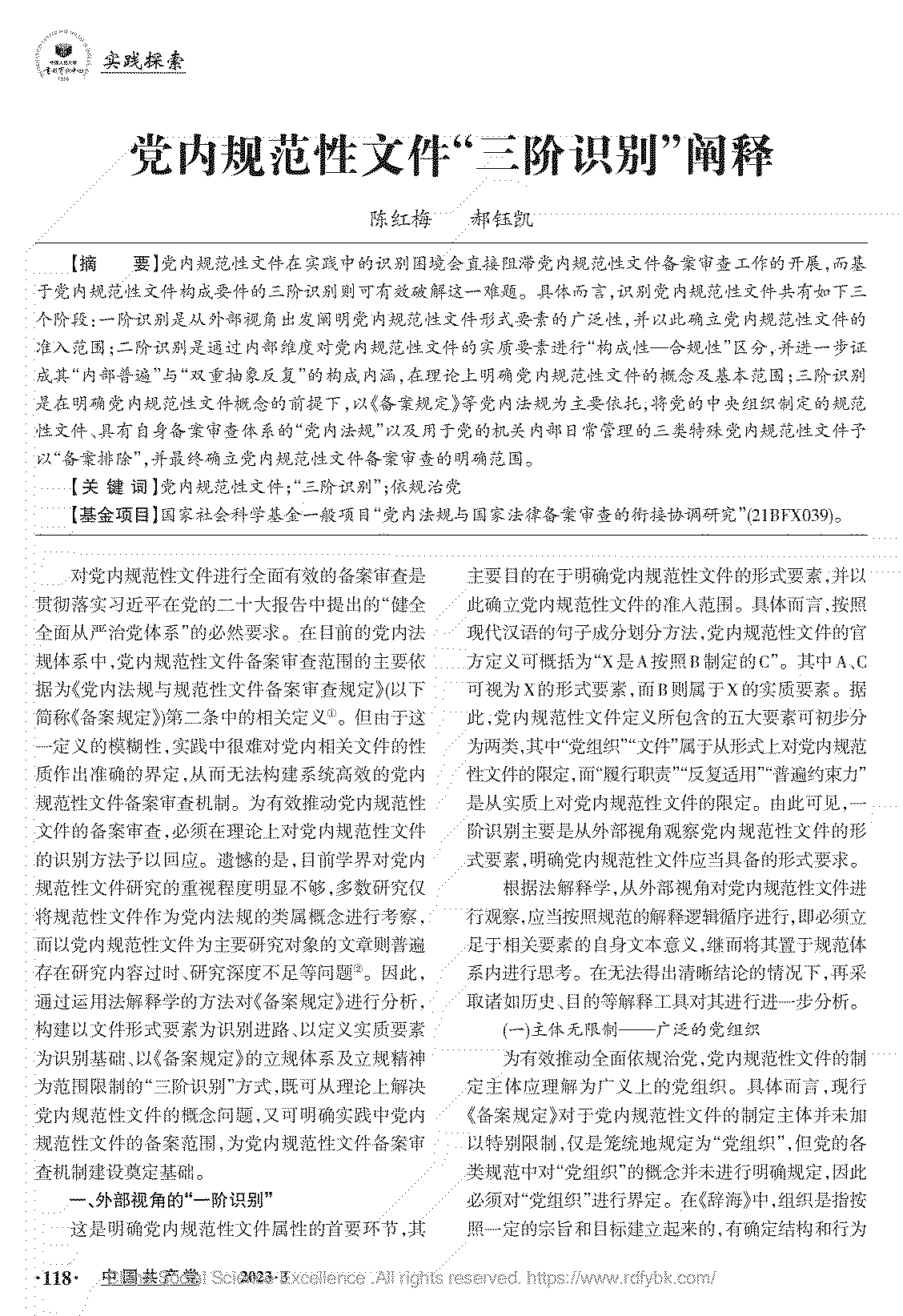 我院陈红梅教授、博士生郝钰凯合著论文《党内规范性文件“三阶识别”阐释》(原载《理论探索》2022年第6期),被人大复印资料《中国共产党》2023年第3期全文转载。
