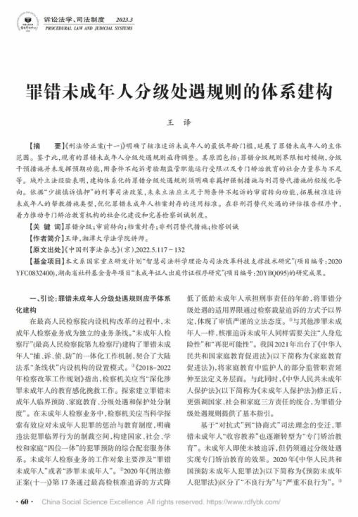 我院王译博士的论文《罪错未成年人分级处遇规则的体系建构》(原载《中国刑事法杂志》2022年第5期),被人大复印资料《诉讼法学、司法制度》2023年第3期全文转载。