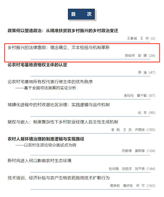 摘要:《中华人民共和国乡村振兴促进法》的颁布,既是对中国乡村振兴战略实施成果的法律确认,也标志着中国农业农村立法进入新的阶段。乡村振兴法律激励体现了促进型立法特性,既是乡村发展改革的需要,又是激励政策法律化的结果。《中华人民共和国乡村振兴促进法》及25部省级乡村振兴地方性法规中包含着丰富的具有激励意义的规范。在全面实施乡村振兴战略的背景下,通过对乡村振兴法律激励样本与实践情况的分析,本文研究发现,乡村振兴立法存在宏观上法律激励供给不足,微观上法律激励对象定位不清晰,激励范围比例失衡,激励措施呈现模糊性、物质性、碎片化等问题,亟待机制革新。鉴于此,本文基于法律激励理论,主张通过强化法律激励制度的有效供给、构建多元主体的统合型协同格局、平衡乡村振兴的激励范围、增强激励措施的有效性等方式,构建完备的激励规则,更好地发挥法律的激励、引导和保障功能,最大限度激发全社会投身乡村振兴事业的积极性和主动性。