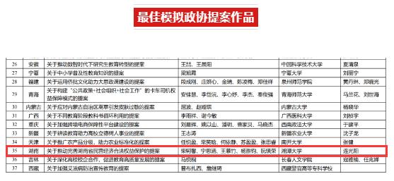 全国青少年模拟政协提案征集活动由共青团中央维护青少年权益部、全国学联秘书处主办。本次活动全国共有157.8万余名青少年报名参加,73.1万余名各级政协委员、思政教师担任指导老师,征集提案作品57.8万余件。经省级团委审核、推荐,共有875件提案作品参与全国评审,最终评出100件“最佳模拟政协提案作品”(其中大学组48件作品)和100件“优秀模拟政协提案作品”。