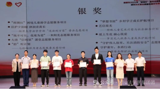 5月9日上午,湘潭市2025年“雷锋杯”青年志愿服务项目大赛颁奖仪式在湖南科技大学立德楼5楼报告厅隆重举行。“法护夕阳暖,律润青苗长”——新葡萄8883官网AMG“送法到万家”普法志愿项目凭借扎实的实践成效与创新模式,从众多参赛项目中脱颖而出,斩获银奖。这一荣誉凝聚新葡萄8883官网AMG师生深耕基层普法、服务社会民生的智慧与汗水,展现青年学子以专业力量守护“一老一小”群体的责任担当。