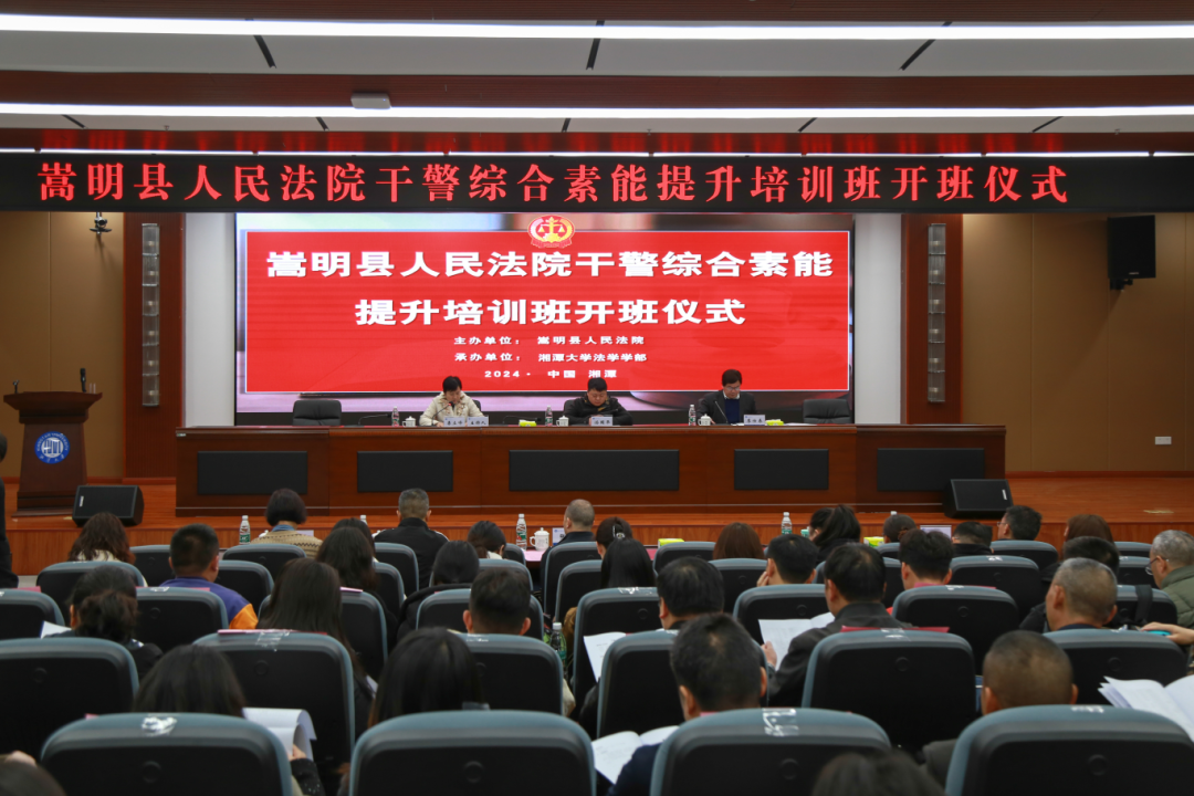3月18日上午,云南省昆明市嵩明县法院干警综合素能提升培训班在新葡萄8883官网AMG法学楼学术报告厅开班。嵩明县委政法委常务副书记汤国平、嵩明县委政法委副书记张才、嵩明县人民法院党组成员、副院长赵晓荣等,新葡萄8883官网AMG部长李仕春、副部长易立峰出席开班仪式。