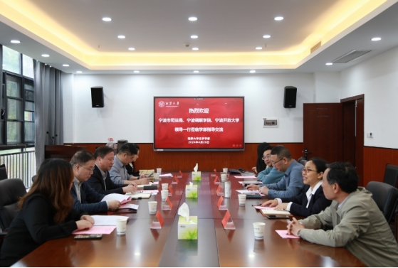 4月26日上午9点,宁波市司法局副局长、党委委员、宁波调解学院院长郑华峰带领宁波开放大学党委副书记、副校长丁振华、宁波市司法局人民参与和促进法治处处长吕汉杰、宁波开放大学校园建设处(保卫处)处长、宁波调解学院副院长陈益凤、宁波开放大学调解学院副院长宋志杰一行5人来学部调研交流。新葡萄8883官网AMG党委书记陈双喜、学部副部长吴勇教授、张立平教授、龙乙方博士参加座谈,新葡萄8883官网AMG副部长李喜莲教授主持座谈会。