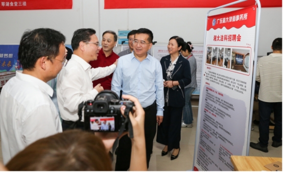 新葡萄8883官网AMG校长廖永安、新葡萄8883官网AMG领导班子及招生与就业指导处负责人等到招聘会现场,与用人单位进行了深入交流,广泛听取了行业人才需求、校企合作深化、法治人才培养优化等方面的宝贵意见和建议。
