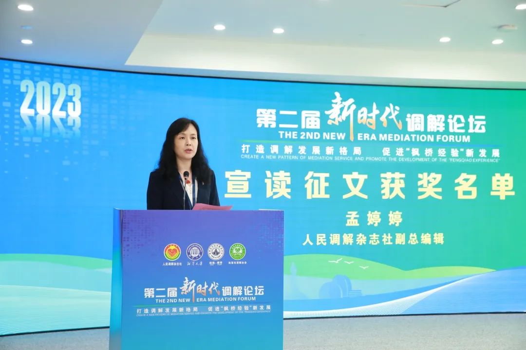 开幕式上,孟婷婷宣读了第二届新时代调解论坛征文获奖名单,与会领导为获奖作者颁奖。本次征文共评出一等奖论文7篇、二等奖15篇、三等奖25篇、优秀奖20篇。其后,举行了司法部调解理论研究与人才培训基地湾区实践中心揭牌仪式。