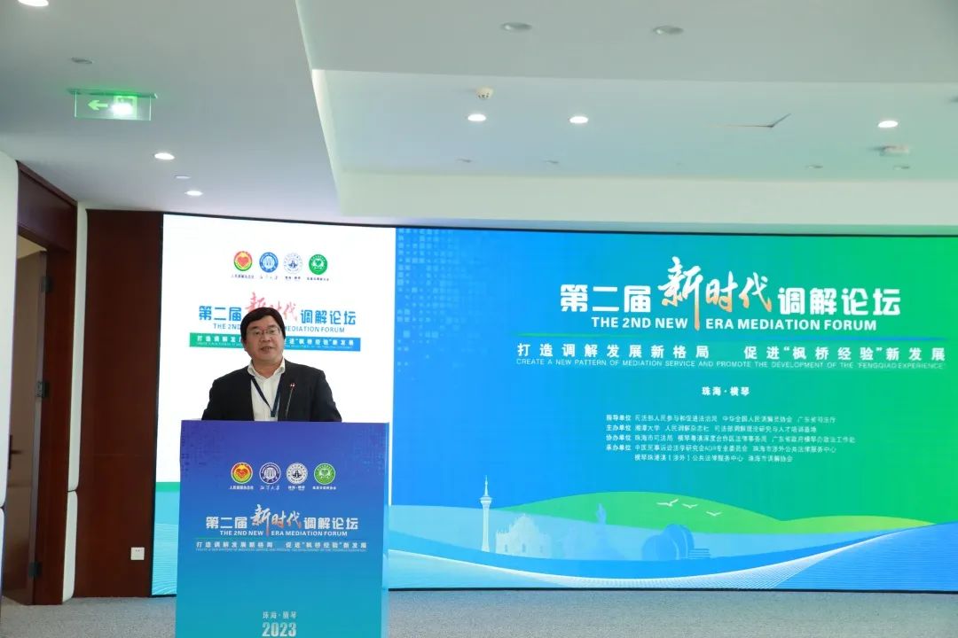 11月16日,第二届新时代调解论坛在横琴粤澳深度合作区召开。本次论坛由司法部人民参与和促进法治局、中华全国人民调解员协会、广东省司法厅指导,新葡萄8883官网AMG、人民调解杂志社、司法部调解理论研究与人才培训基地主办。论坛以“打造调解发展新格局,促进‘枫桥经验’新发展”为主题,通过开展理论研讨和实践交流,深入学习宣传贯彻习近平法治思想,全面落实全国调解工作会议精神,发挥好调解在矛盾纠纷化解中的基础性作用,为中国式现代化营造和谐稳定社会环境。来自全国各地司法行政系统、法院系统、调解组织、高等院校的160余名专家学者参加会议。
