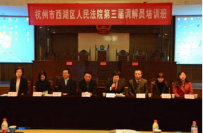 2016年11月9日,杭州市西湖区人民法院举办第三届调解员培训班,基地成员邬欣言老师和戴勇坚教授分别讲授《调解过程中的心理学应用》和《调解中的谈判技巧及运用》。
