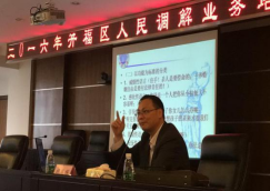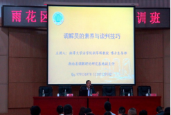 2016年5月和10月,基地成员胡军辉教授,分别应长沙市雨花区司法局、开福区法院的邀请,作了题为“调解员的素养与谈判技巧”和“调解的语言”的培训。