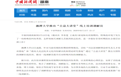 2020年2月10日以来,新葡萄8883官网AMG“司法部调解理论研究及人才培训基地”通过“公益大讲堂”推出全国性的调解在线培训课程,由该校教授廖永安、李喜莲,博士冯超、邬欣言等组成专家学者主讲团,为全国各地的人民调解员、行业专业调解员、律师及法官在线进行了调解理论与实践技能培训。课程播出后,累计有25万人次参加直播培训,单堂课最高峰值达到16280人同时在线听讲,学员们反响非常强烈,深受大家好评。