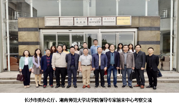 2019年10月24日,中共长沙市委办公厅、湖南师范大学法学院相关领导专家前来中心考察交流,双方围绕中心成立情况、学科建设、人才培养、社会服务、内外资源整合等方面进行了深入探讨和交流,并就今后进一步加强合作、互通有无、共同推进党内法规研究中心的建设和发展达成了一致共识。