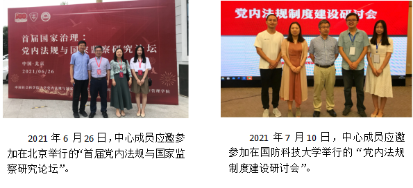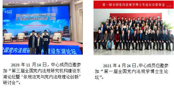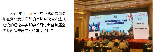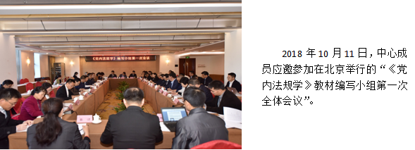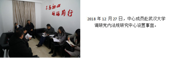 中心坚持“走出去”“引进来”的发展思路,对接中央办公厅法规局、湖南省委办公厅法规室、湘潭市委办公室法规室以及全国各高校党内法规研究机构,积极交流党内法规学术研究思路。
