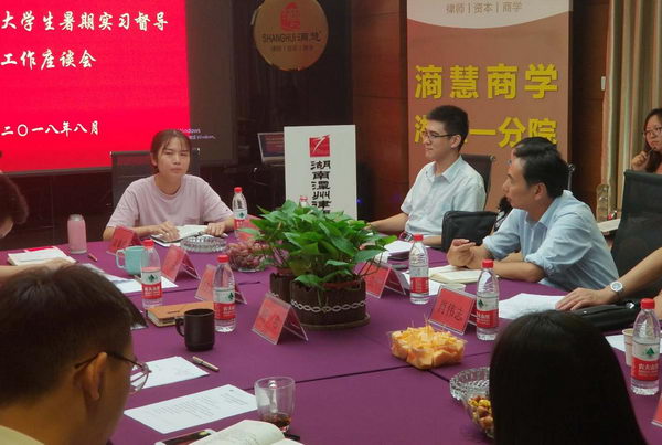 2018年8月22日下午,新葡萄8883官网AMG法学院·知识产权学院“法学实践教育基地建设暨2018年大学生暑期实习督导工作座谈会”在湖南潭州律师事务所举行。学院本科教育教学督导组组长张立平教授,副院长、督导组副组长肖伟志副教授,督导员李蓉教授、张永江副教授、刘军平副教授,湖南潭州律师事务所主任何琪律师,副主任曾卓娟律师、杨希律师,白大鹏律师、周欢律师、徐玉莲律师、刘雷律师以及我院2016级赵哲等六位学生参加会议,会议由穆远征副院长主持。