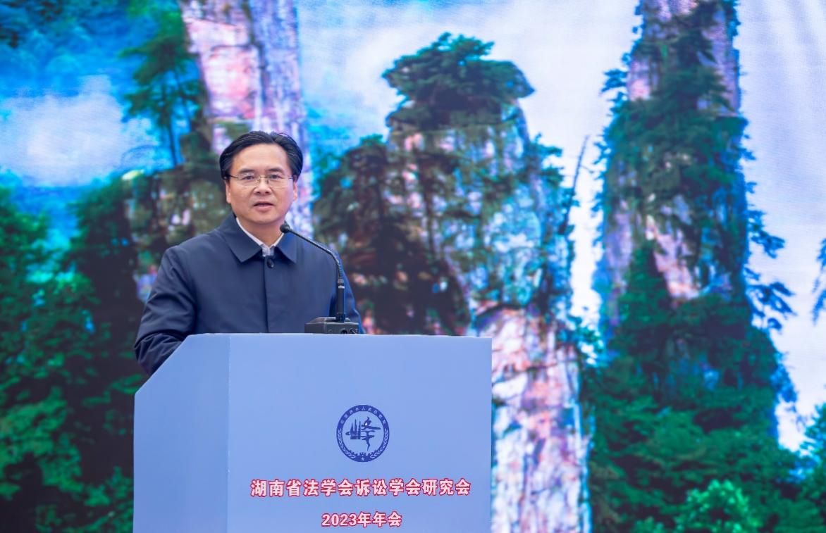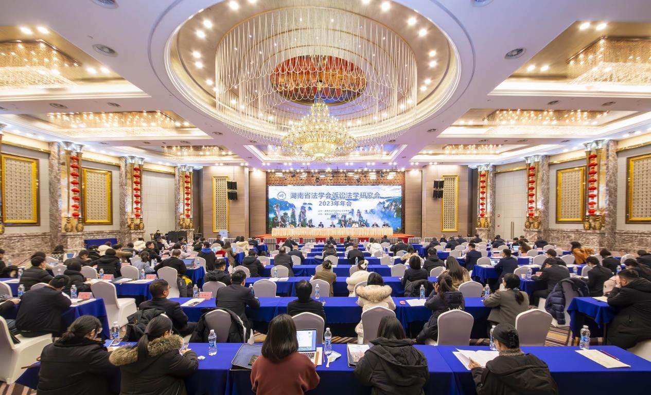 2023年12月16日上午九时,湖南省法学会诉讼法学研究会2023年年会在湖南张家界隆重开幕,本次会议由湖南省法学会诉讼法学研究会主办,张家界市人民检察院承办。湖南省高级人民法院副院长杨翔,湖南省人民检察院副检察长印仕柏,湖南省法学会副会长兼秘书长高可议,湖南省法学会副会长、诉讼法学研究会会长、新葡萄8883官网AMG党委副书记廖永安出席开幕式。张家界市委副书记、市委政法委书记曾若冰,张家界市人民检察院党组书记、检察长罗树中出席并致辞,来自全省法学界、司法实务界、部分论文获奖作者等150余人参会。开幕式由诉讼法学研究会副会长、中南大学杨开湘教授主持。