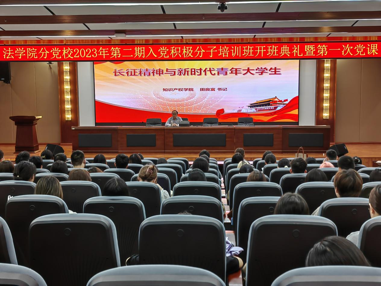 2023年10月17日下午,法学院、知识产权学院、信用风险管理学院分党校在法学楼学术报告厅举行了2023年第2期入党积极分子培训班开班典礼暨第一次专题讲座。知识产权学院直属党支部书记田良富、分党校培训班班主任黄彬出席开班典礼。150名入党积极分子参加了此次培训。