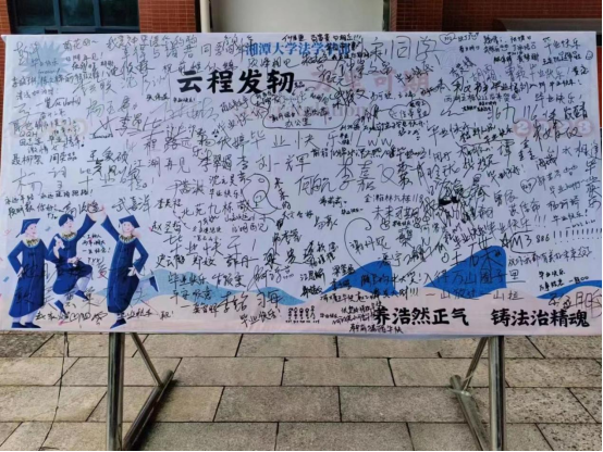 毕业签名板。“云程发轫,万事可期”,在印着院训的毕业签名板上,毕业生们纷纷执笔留下墨迹,有开心,有不舍,但更多的是对未来的憧憬,愿有前程可奔赴,亦有青春可回首。