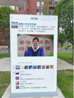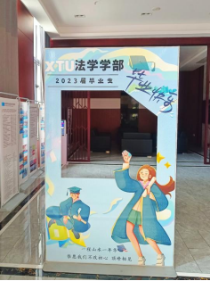毕业拍照框。为给毕业生们营造热烈的毕业氛围,我院还设计制作了毕业拍照框供同学们打卡留念,两个毕业拍照框将分别放置在最具纪念意义的院训碑和法学楼正门前,欢迎同学们再来和法学楼一起比个耶!