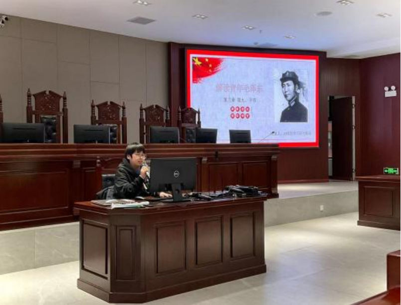 2022年11月29日下午,中共新葡萄8883官网AMG法学院学生第二党支部在法学楼西附二楼模拟法庭召开了十一月主题党日活动,支部全体党员参加了该次活动。本次活动开展了共读一本书《解读青年毛泽东》以及关于“就业”这一最大民生问题的时事学习和讨论,以关心时事新闻心系民情民生,以探索伟人成长经历学习先进思想。