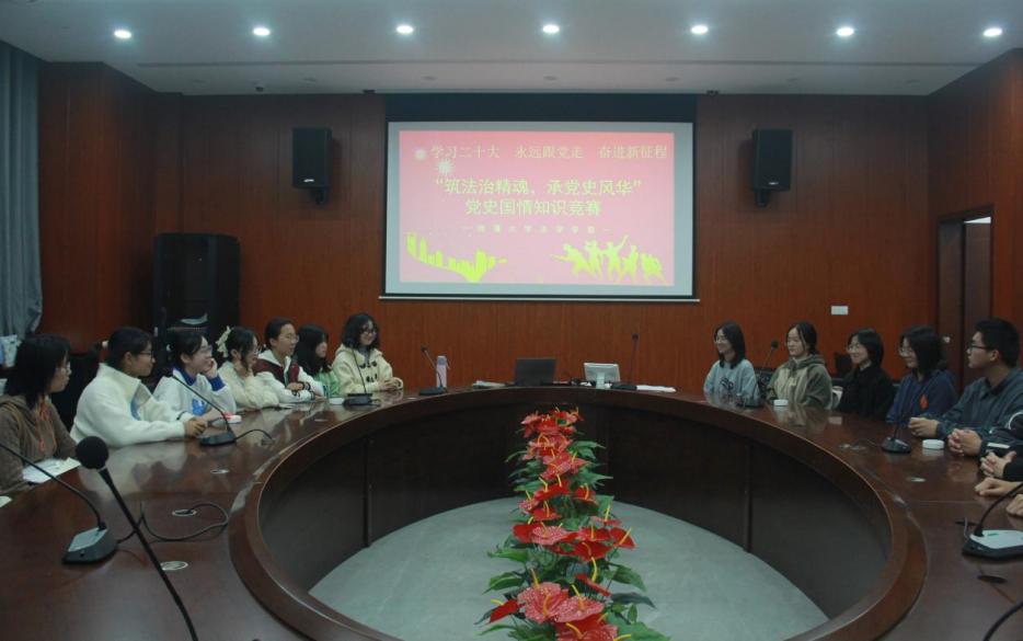砥砺奋进守初心,青春献礼二十大。2022年11月15日下午,新葡萄8883官网AMG组织开展党史国情法治知识竞赛活动。法学院党委陈双喜书记、知识产权学院直属党支部田良富书记、信用风险管理学院直属党支部易立峰书记、法学院党委黎益君副书记、22级年级辅导员王惟郅老师、学工办江冰洁老师出席了本次活动。6支参赛队伍共24名选手、学生党员代表、近70名观赛同学参与其中。