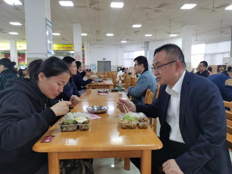 临近中午,教务处党支部贴心地为大家在琴湖食堂准备了午餐,老师同学们边吃边聊,在轻松愉快的氛围中更加拉近了彼此间的距离。学生党员李爽表示:“很荣幸能通过这种轻松的方式与学校教务处的领导和老师们面对面交流,我深切感受到了老师们对学生真切的关心,我会继续努力,不辜负老师的期许,用奋斗让青春更美丽!”(来源:教务处、法学院)