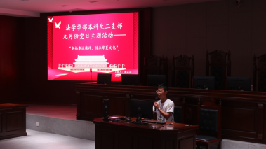 2021年9月26日下午,新葡萄8883官网AMG法学院本科生第二党支部在法学楼模拟法庭开展了九月份主题党日活动。本次主题党日的主题为弘扬奥运精神,传承华夏文化,本次活动由郭泳杉同志主持,二支部全体党员参加。