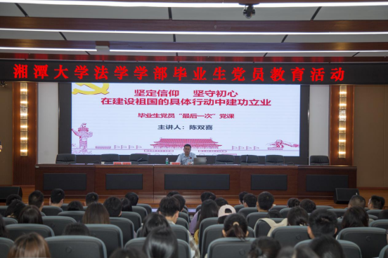 会上,陈双喜以《坚定信仰,坚守初心,在建设祖国的具体行动中建功立业》为主题,给毕业生党员上了最后一次党课。他代表组织叮嘱党员毕业生同学们坚定信仰,坚守初心,在各自岗位上发挥共产党员的先锋模范作用,以实际行动和优秀业绩,为实现第二个百年奋斗目标,实现中华民族伟大复兴做出自己的贡献。