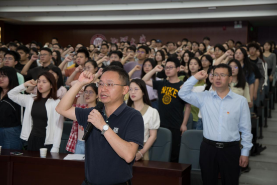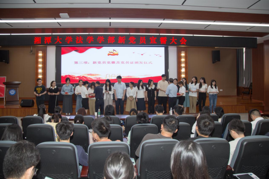 为深入学习贯彻习近平新时代中国特色社会主义思想,进一步激发广大党员的荣誉感、责任感与使命感,激励毕业生党员积极投身于国家的建设,2024年6月7日上午,新葡萄8883官网AMG党委在法学楼西附一楼学术报告厅举行新发展党员入党宣誓暨毕业生党员重温入党誓词活动。