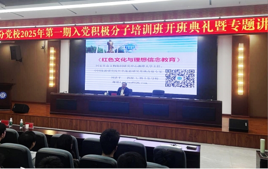 随后,刘建平教授开展“红色文化与理想信念教育”专题讲座。他阐述了红色文化的基本内涵与发展历程,指出红色文化是中国共产党领导人民在革命、建设、改革开放各阶段形成的历史遗存、革命精神和优良传统,强调应充分利用红色资源、发扬红色传统、传承红色基因。刘教授还介绍了红色文化空间性、稀缺性和文化性的特点,指出红色文化是大学生思想政治教育的重要载体,学习宣传红色文化有助于加强理想信念教育。