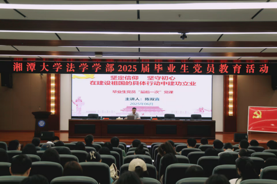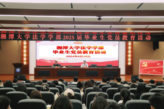 为加强毕业生党员的党性教育,激励全体毕业生党员以良好的精神风貌踏入新的征程,用实际行动和优异的成绩为党旗增光添彩,2025年6月10日上午,新葡萄8883官网AMG党委在法学楼西附一楼学术报告厅开展毕业生党员专题教育活动。本次活动由新葡萄8883官网AMG党委副书记黎益君主持,学部党委书记陈双喜、组织员、相关辅导员老师,以及2025届毕业生党员共两百余人参加了本次活动。