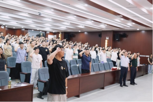 大会在庄严肃穆的国际歌歌声中拉开序幕。新葡萄8883官网AMG党委书记陈双喜带领全体党员重温入党誓词。面对鲜红的党旗,毕业生党员们庄严举起右手握拳宣誓。临近毕业这一人生重要节点,重温誓词让他们铭记入党初心,坚定为实现民族复兴伟业贡献智慧和力量的决心。